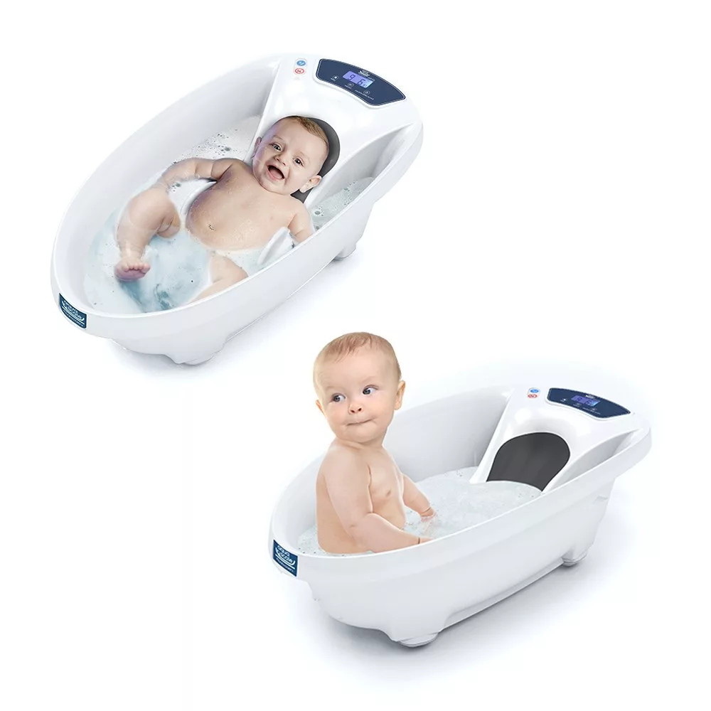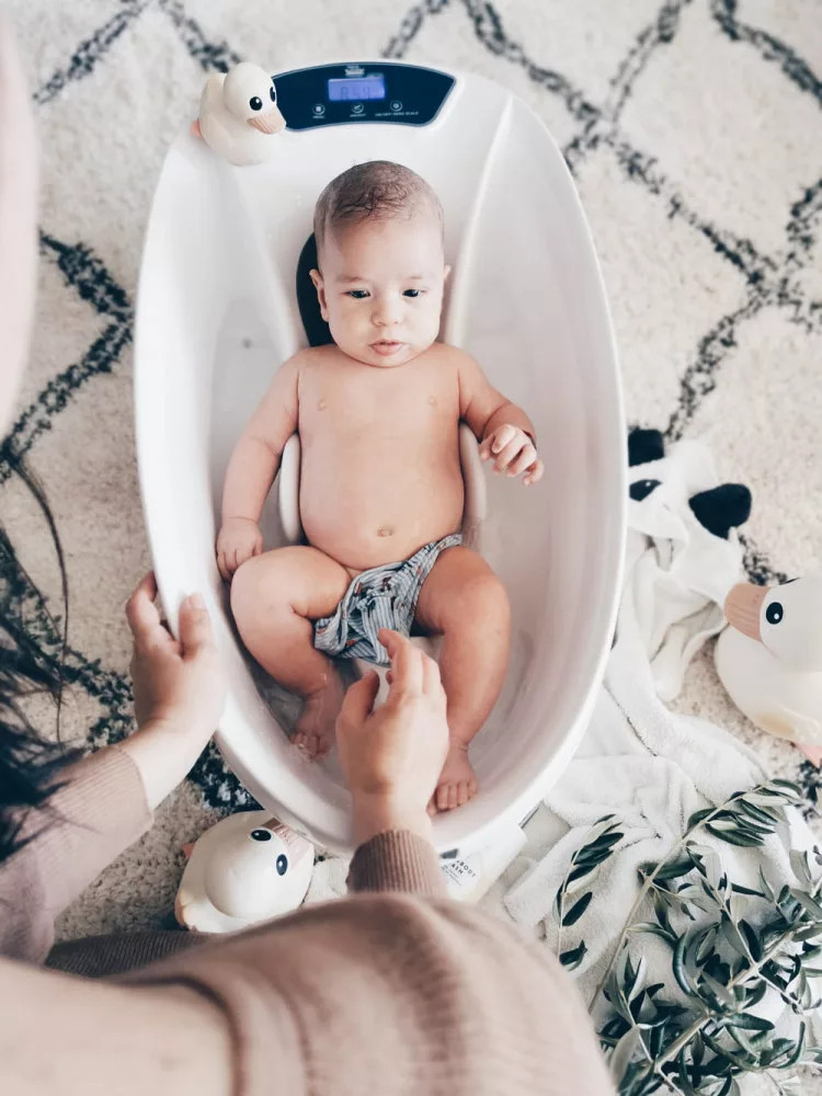 A kád használata lehetővé teszi, hogy könnyedén mérlegeld a babád a fürdés során, miközben a beépített hőmérő folyamatosan figyeli a víz hőmérsékletét is.