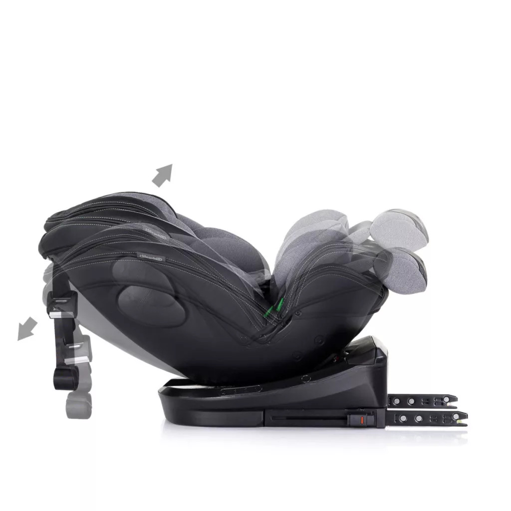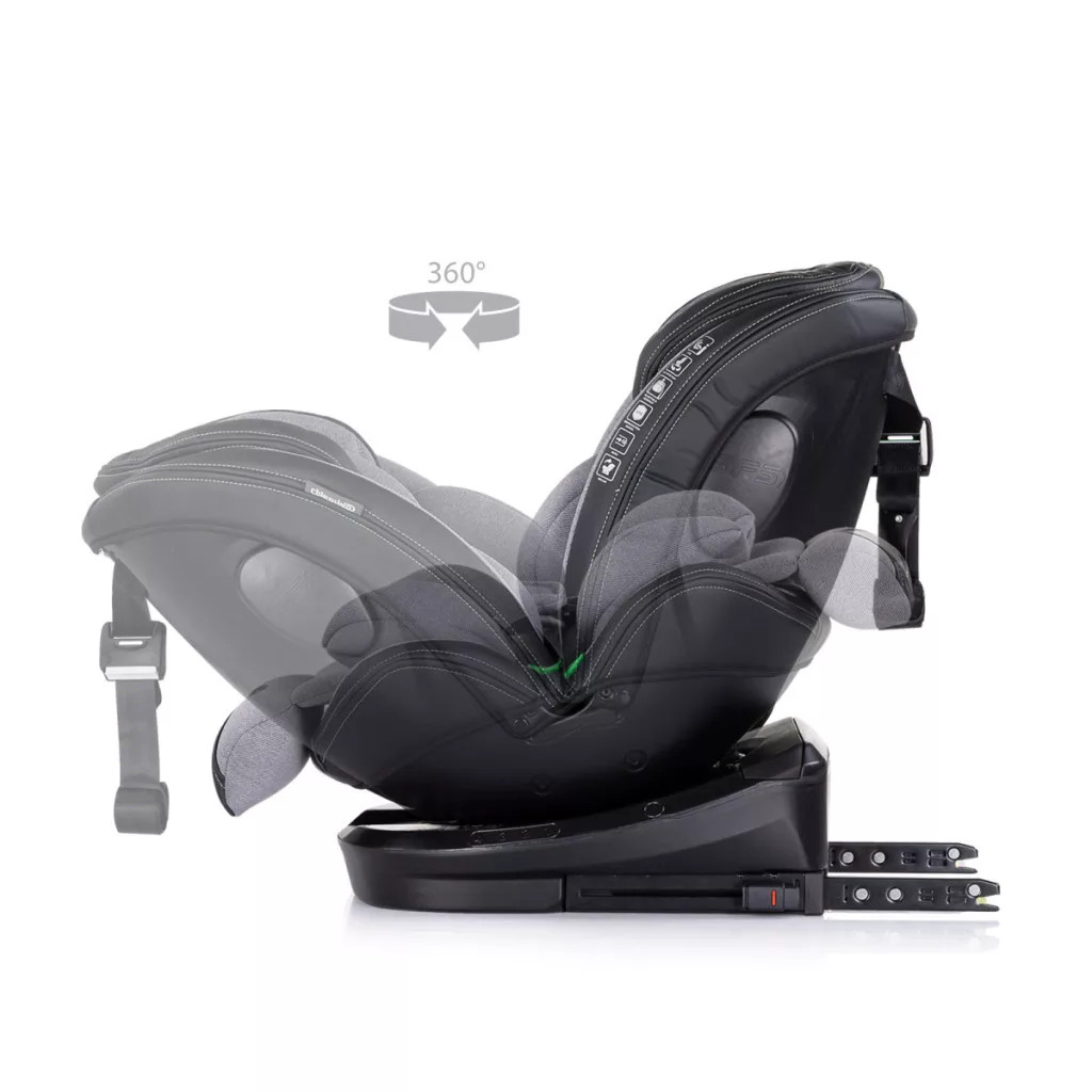360 fokban forgatható autósülés, 40-150 cm-ig. Kiválóan párnázott autósülés, így már a legkisebbek is kényelmesen utazhatnak.