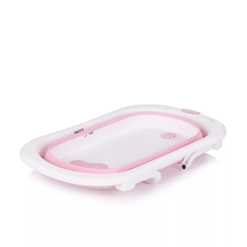 Összecsukható fém állvány – kényelmes magasságba emeli a kádat, védve a szülők hátát.