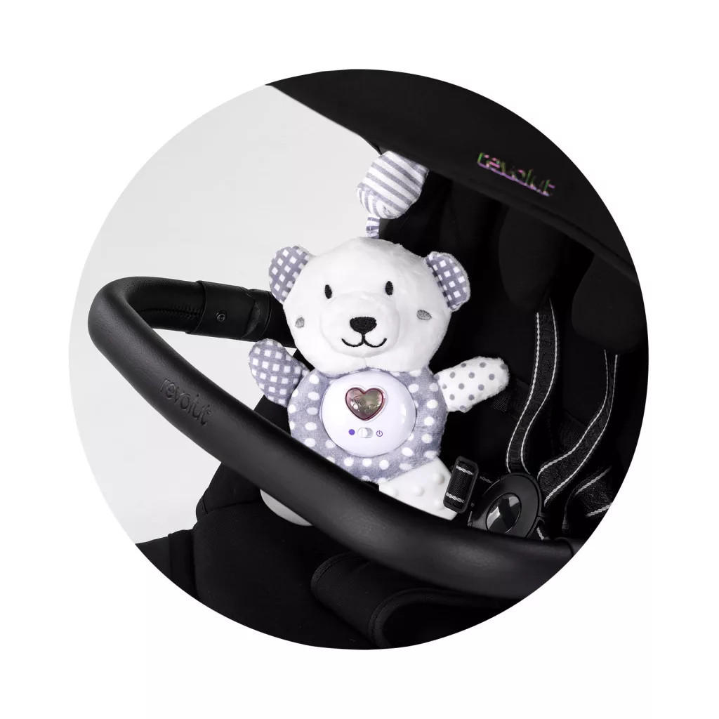 Kompakt kialakításának köszönhetően a babakocsira vagy kiságyra egyszerűen rögzíthető.