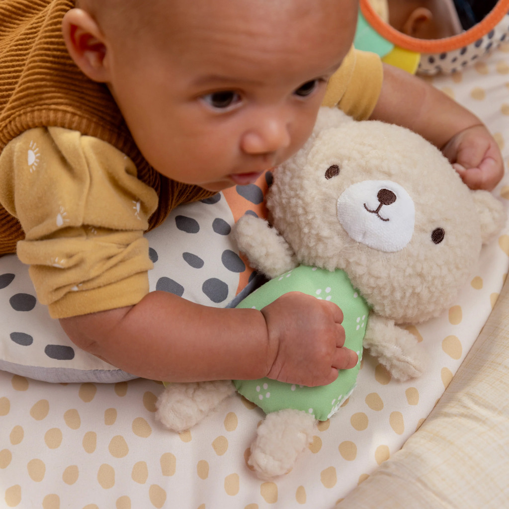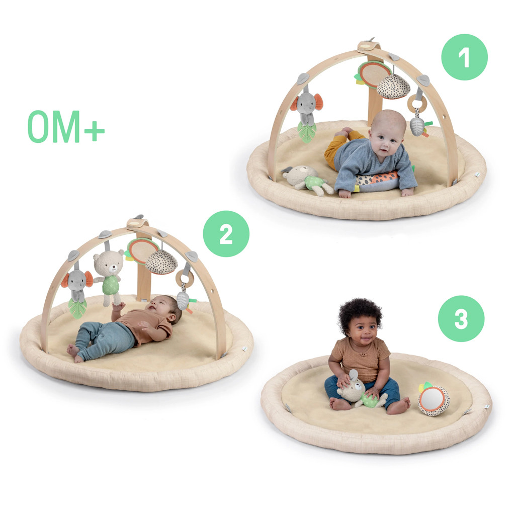 Biztosítson még több kényelmet a babának a játékvilágában az igazi ausztrál juhgyapjúból készült Every Season játszószőnyeggel. A szőnyeg egyedülálló, otthonos környezetet kínál a baba első hónapjaiban, és a juhgyapjúnak köszönhetően tökéletesen védi a baba testhőmérsékletét. A puha, sűrű gyapjú csodálatos tapintási ingert nyújt, amely támogatja a baba érzékszervi fejlődését. A szőnyeg ideális a háton fekvő játékokhoz, de a hason töltött időhöz is. Háromféle játékot kínál – fekve, hason és ülve. A fa levehető játékhíd 5 különböző játékot tartalmaz, amelyek rengeteg szórakozást nyújtanak a babának. Könnyen magukkal vihetik bárhová. Két plüss játék, egy mackó és egy elefánt, egy fa gyűrű érzékszervi szalaggal és két tükörjáték, amelyek támogatják a baba önfelfedezését. A kétoldalas prémium modern minta bármely otthont kiegészíti. A szőnyeg gyártásához használt játékok és anyagok kifejezetten a baba első életévére lettek kiválasztva, hogy minél jobban segítsék a látási és tapintási fejlődést.